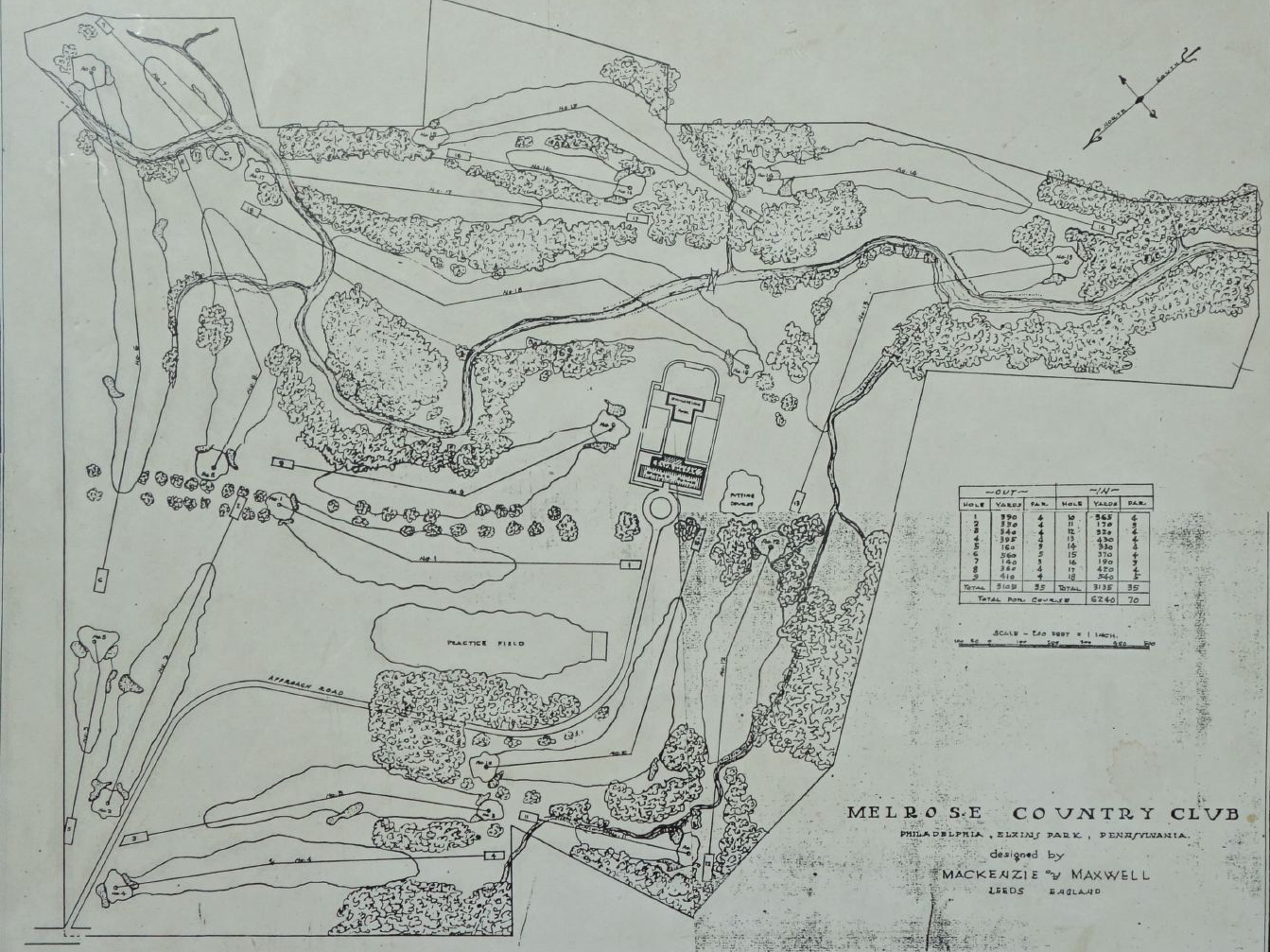 Not long after opening, Tookany Creek Parkway was constructed, running through the heart of the property and wiping out a number of the original holes. In 1947 the name was changed to Melrose Country Club. For a brief time, a field to the south of the course was used for temporary holes before today’s routing was completed. Canadian architect Robbie Robinson is credited with a remodel of the course, perhaps in charge of making the changes from the original to current layout. Ian Scott-Talyor completed a renovation in the late 2000s and developed an new routing that hangs in the pro-shop (not implemented).